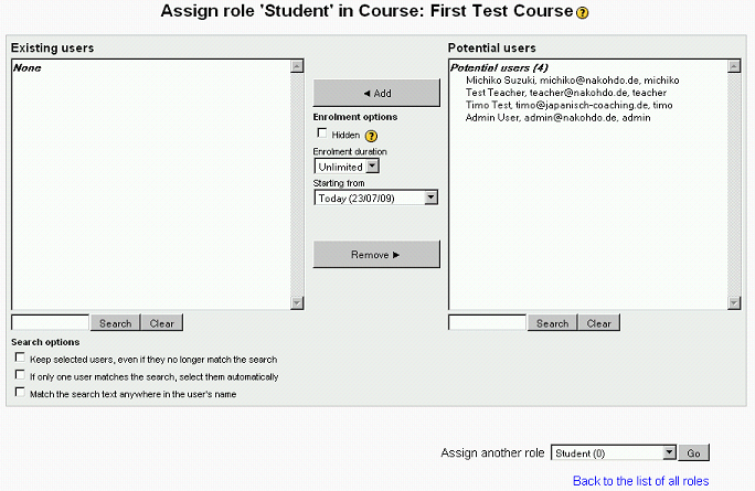 If you want to play along you first have to add jQuery to your Moodle installation. Just download the library (56 KB) and copy it into the /user/selector folder. Then you add jQuery to the list of required JavaScript in /user/selector/lib.php: