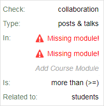 - Collaboration type posts & talks checks simple add post and talk instances from logs in the selected course modules.