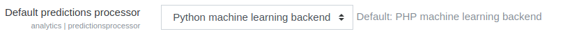 The Python processor is more powerful and it generates graphs that explain the model performance. It requires setting up extra tools: Python itself (https://wiki.python.org/moin/BeginnersGuide/Download) and the moodlemlbackend python package. The package can be installed in the web server (in all the codes if in a clustered environment) or in a separate server.