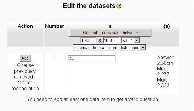 in /;lib/quiz.php $string['dataitemneed'] = 'You need to add at least one set of data items to get a valid question';
